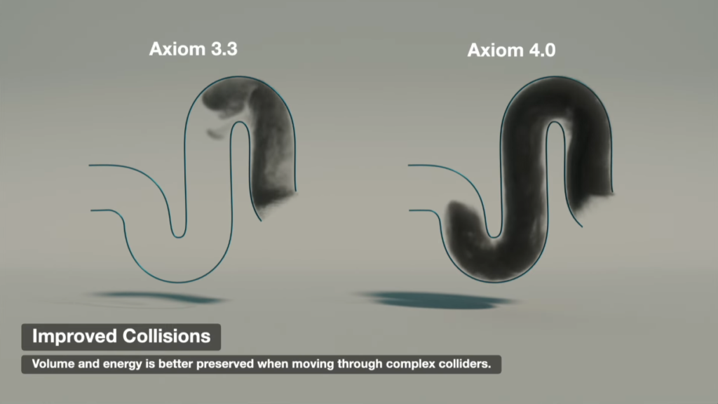 - より正確なコリジョン。アニメーションするコライダーでの値の損失が少なくなりました。流体は狭い領域も以前より通過しやすくなっています。